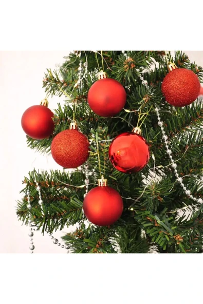 Loremp Yılbaşı Ağacı 5cm Yılbaşı Ağaç Süsü 10 Adet -Kırmızı
