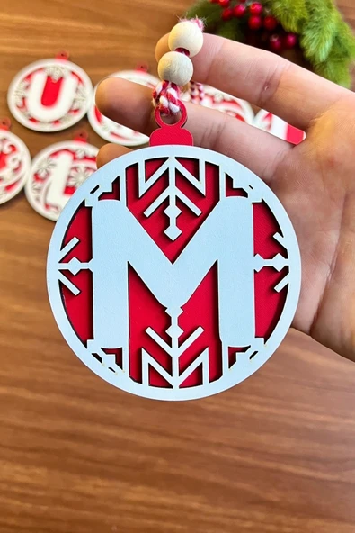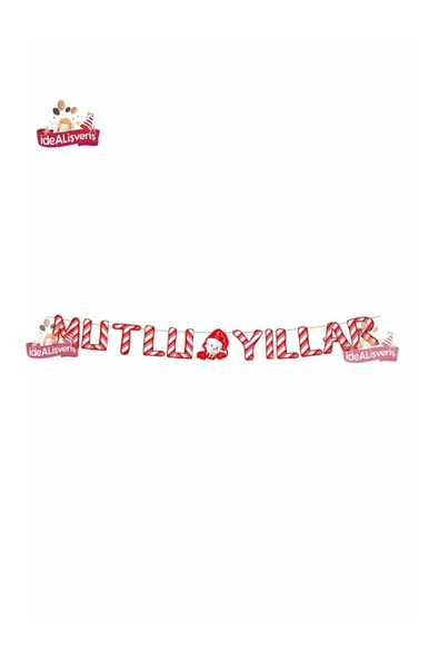 BUFFER® 11 Harfli Kırmızı Beyaz İpli MUTLU YILLAR Yazılı Ahşap Yılbaşı Ağaç Süsü