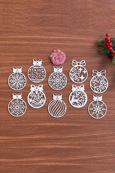 BUFFER® 10 Parça Kırmızı Beyaz İpli Fiyonk Model Ahşap Yılbaşı Ağaç Süsü