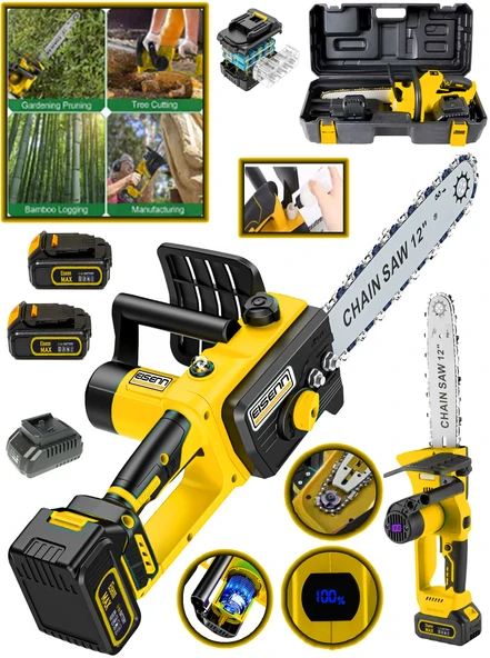 Eisenn German Yeni Nesil BL Motor Dal Budama Testeresi Bıçkı Makinası Li-on Batarya 2 Akülü