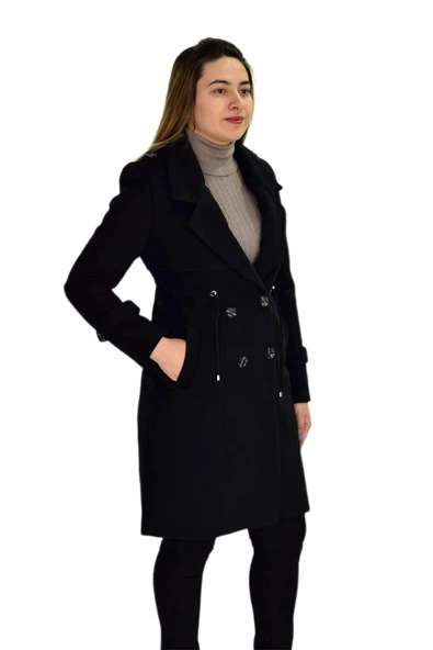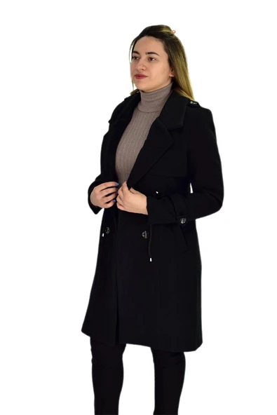 Kışlık Kemer Detaylı Kaşmir Kaşe Kadın Kaban