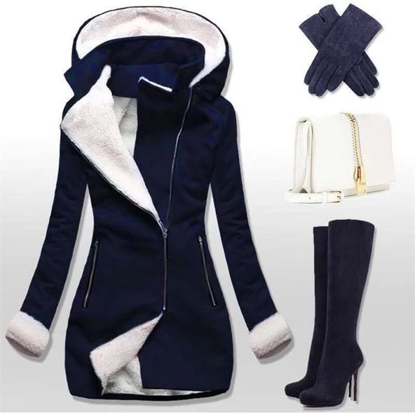 Kapüşonlu Kaşmir Kaşe Kadın Kaban