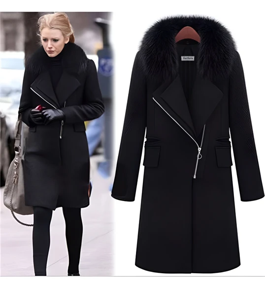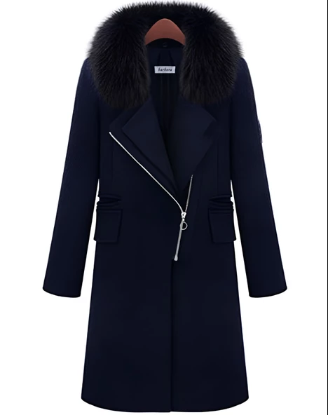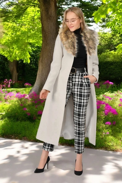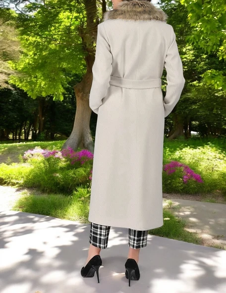 Kışlık Çıkarılabilir Kürk Yaka Kaşmir Kaşe Kadın Kaban
