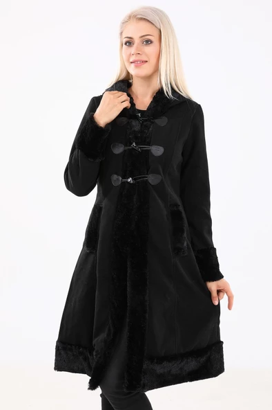 Kaşmir Kaşe Kadın Kaban Kışlık Kürklü