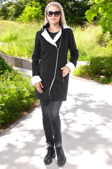 Ekol Oversize Peluş Kaban - Fermuarlı Kadın Kışlık