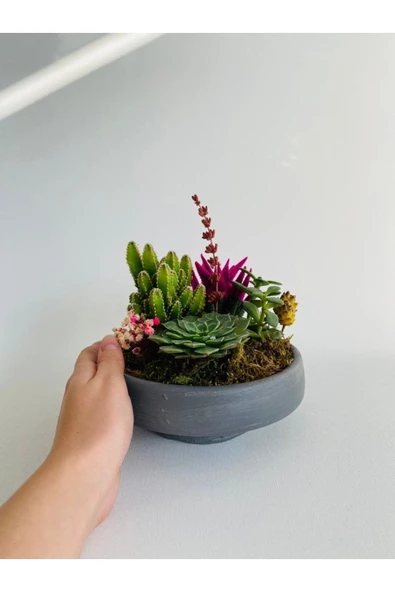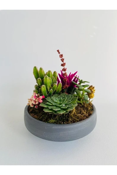 Dekoratif Beton Saksıda Teraryum (sukulent Ve Kaktüs)