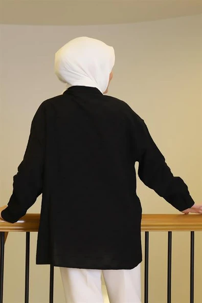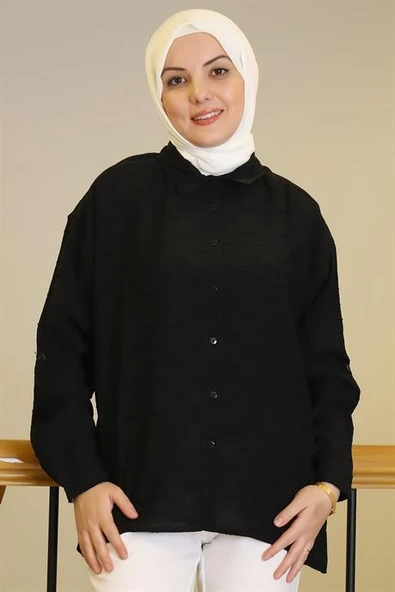 ARKASI UZUN SİYAH KADIN GÖMLEK 29586-2Y5