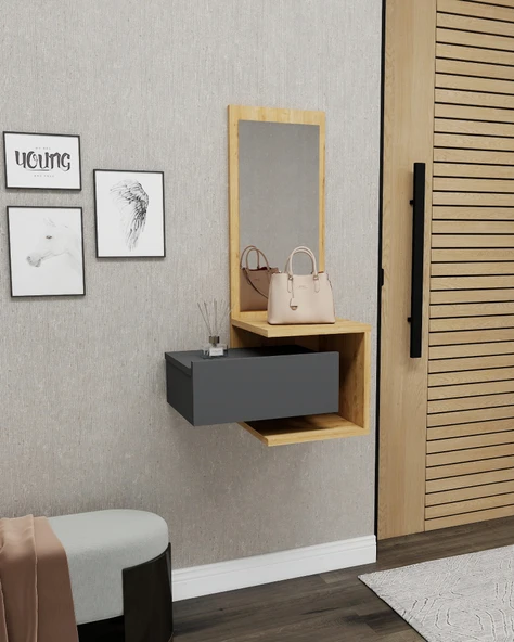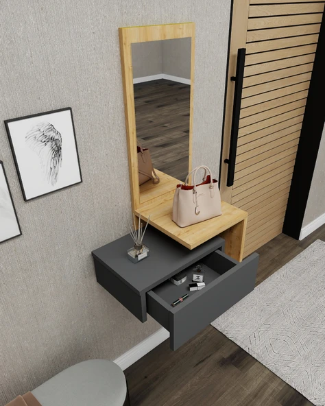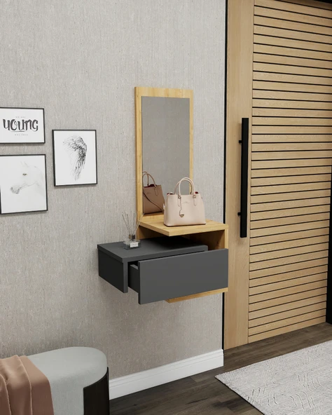 Arnetti Stella Aynalı Duvara Monte Çekmeceli Aynalı Dresuar Makyaj Masası Antrasit , Safirmeşe