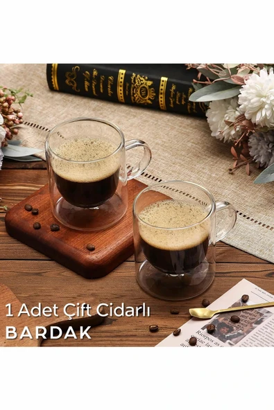 ARVALE 1 Adet Çift Cidarlı 240 ml Kahve Kupası | Isı Yalıtımlı Kahve Bardağı