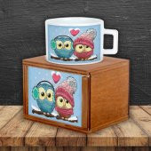 Aşık Baykuşlar Kutulu Kupa Baykuş Dörtlü Not Defteri İş Hediyesi