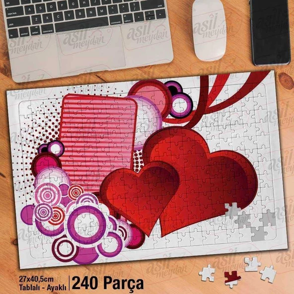 Asil Hobi Vektörel Çiçzim - Kalp - Aşk -Sevgi Yapboz- Ayak Destekli Çerçeveli 240 Parça Puzzle