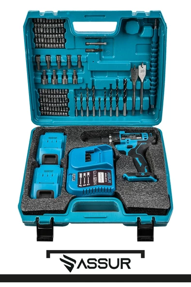 - Assur 12V 1.5Ah Metal Şanzıman Çift Akülü 84 Parça Şarjlı Matkap Akülü Vidalama