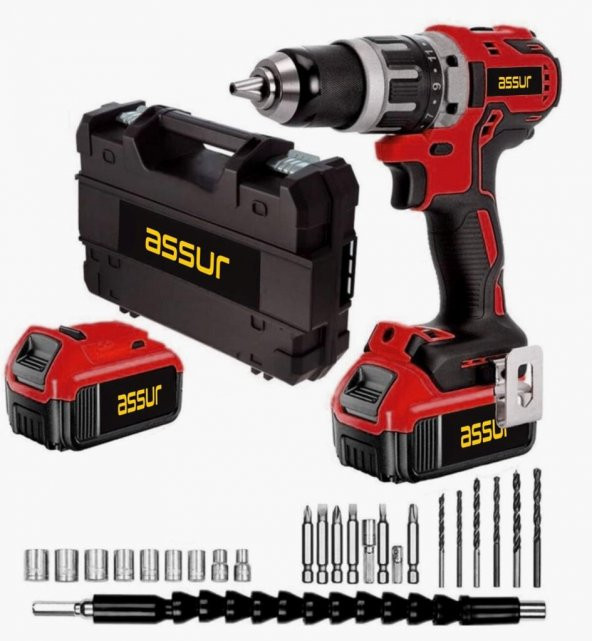 Assur Pro 58w 6ah X-line Metal Şanzıman Çift Akülü Darbeli Şarjlı Matkap Profesyonel