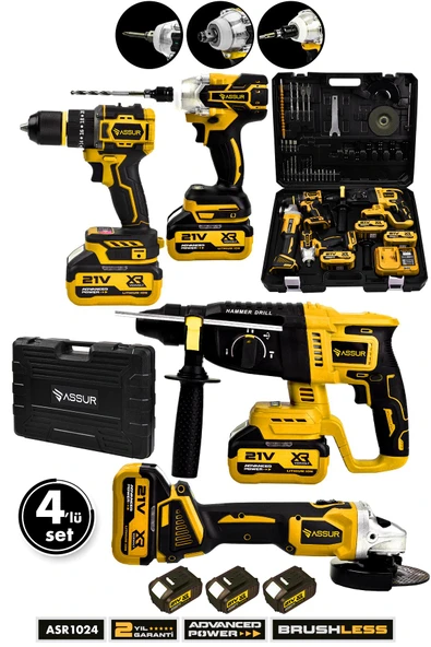Assur Profesyonel 21V Akülü Somun Sıkma & Taşlama & Kırıcı Delici Hilti & Matkap 4'lü Set