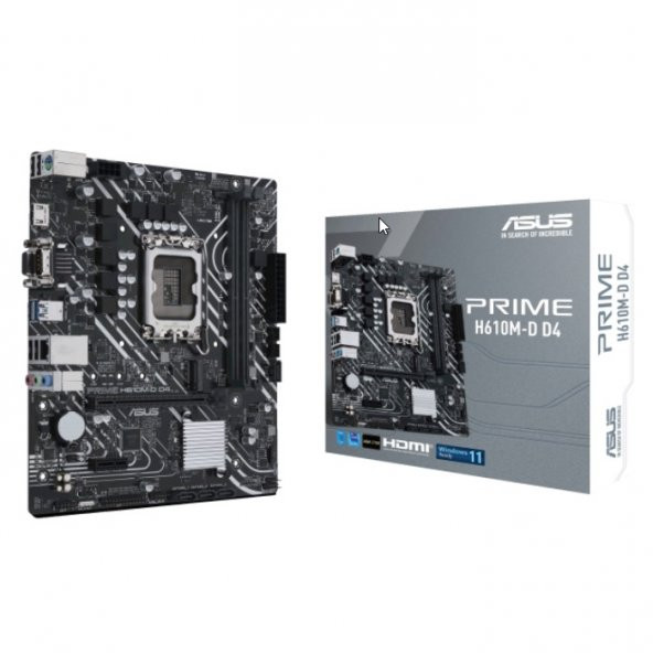 - ASUS PRIME H610M-D D4 DDR4 M2 PCIe NVME HDMI PCIe 16X v4.0 1700p mATX Seri Port