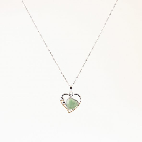 Aventurin Doğal Taş Kalpli Kolye, Gümüş Zincir