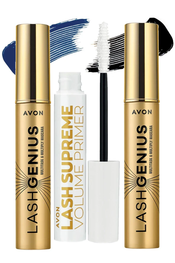 AVON True Lash Genius 5 Etkili Mavi Siyah Maskara Ve Maskara Bazı Paketi