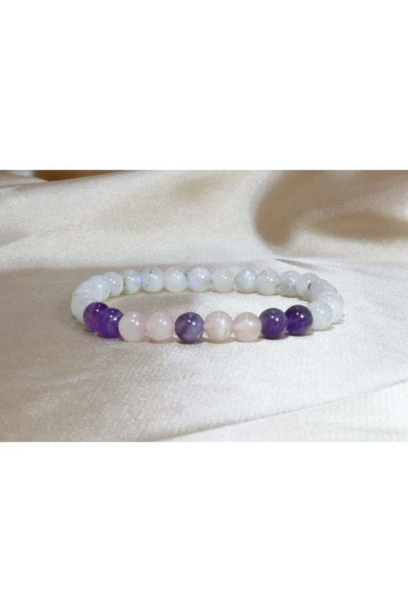 Ay Taşı Ametist Pembe Kuvars Doğal Taş Bileklik 8 Mm