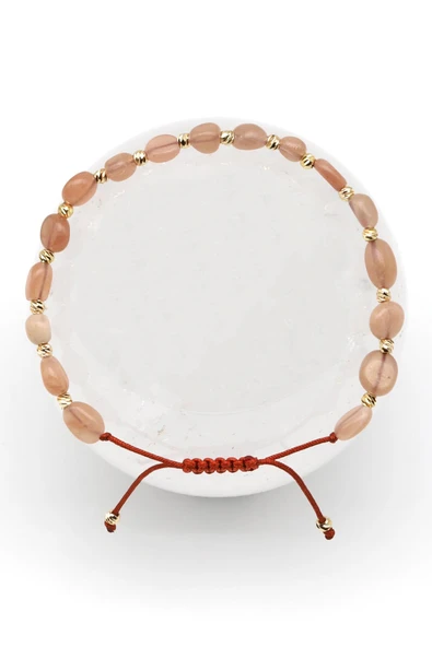 Ay Taşı Doğal Taş Makrome Örme Bileklik Mercimek Kesim