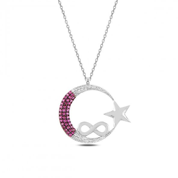 Ay Yıldız Model Sonsuzluk Motifli Gümüş Kolye