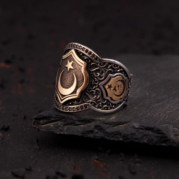 Ay Yıldız Zihgir Modeli Gümüş Erkek Yüzük -Z3393