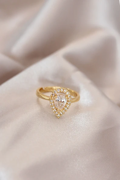 - Ayarlamalı Gold Renk Metal Zirkon Taşlı Damla Model Yüzük
