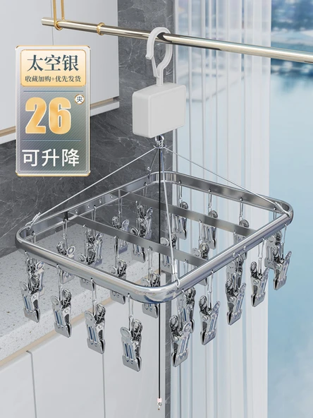 Ayarlanabilir Balkon Tipi Alüminyum Çamaşır Kurutma Askısı - [Kaldırılabilir] 26 Klipsli - Gümüş