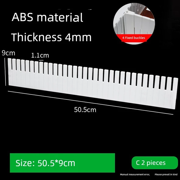 Ayarlanabilir Çekmece Bölme Düzenleyici - C Tipi 2 Adet [50.5*9cm] 4 Sabit Tokalı