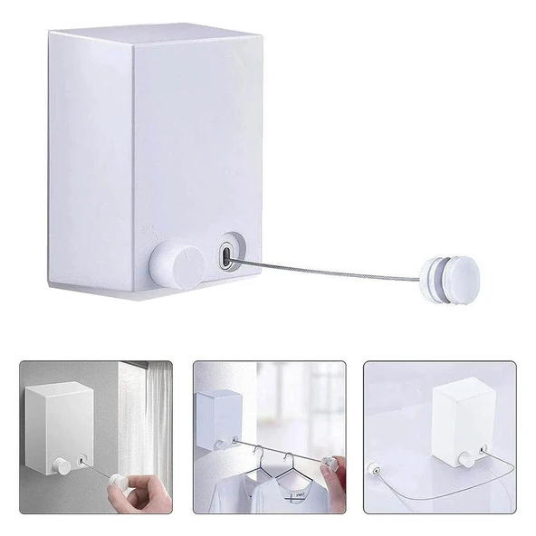 Ayt Sunup Paslanmaz Çelik Halatlı Askılık Geri Çekilebilir Çamaşır İpi Duvar Askısı Ayarlanabilir