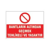 Bantlar altından geçmek yasaktır, isg uyarı levhası