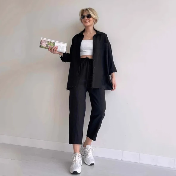 Keten Günlük İkili Takım Elbise Pantolon Gömlek