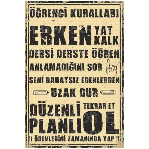 - Başarılı Öğrenci Kuralları Tablosu Retro Ahşap Poster