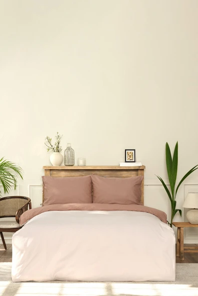 Basic Bej-kahve Çift Taraflı Çift Kişilik Nevresim Takımı