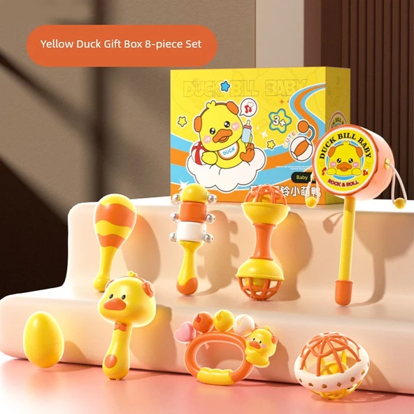 Bebek Çıngırak Oyuncak Seti - Sarı Ördek 8 Parça Çıngırak Hediye Kutusu