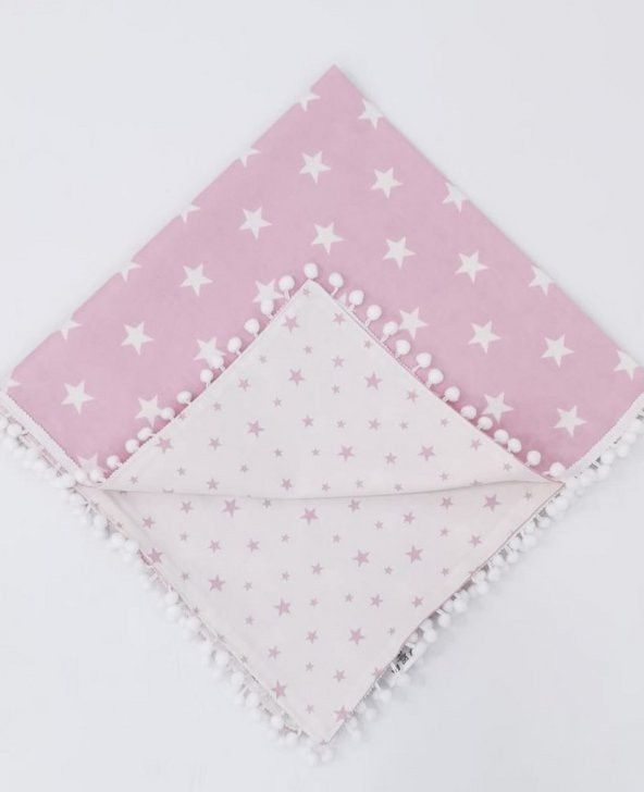 Ana Sayfa Ev Dekorasyon Ev Tekstili Bebek Odası Tekstil Battaniye Mordesign Bebek Pikesi Yıldız Desen, Kenarları Ponponlu, Pembe Renk