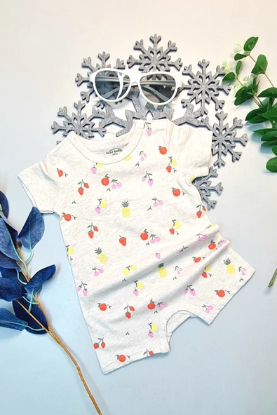 Bebek Yazlık Kısa Kol Şort Tek Parça Çıtçıtlı Tulum Zıbın %100 Pamuk Çilek Ananas Kiraz