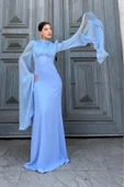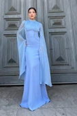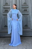 Ana Sayfa Giyim & Aksesuar Kadın Giyim Elbise Abiye Elbise Bel Boncuk İşleme Detaylı Beden Ayarlı Abiye Elbise 2325-Mavi