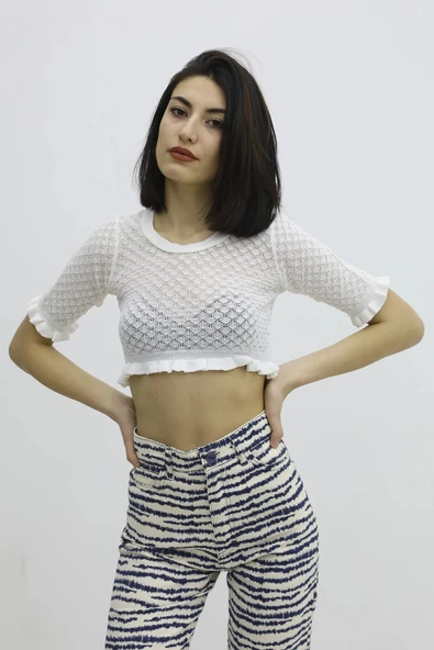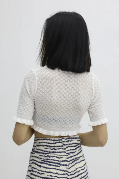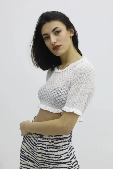 Bel Lastikli Triko Bluz - P-019803EKRU