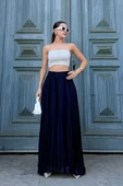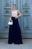 - Beli Lastikli Pliseli Şifon Pantolon 6030-Lacivert