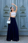 Ana Sayfa Giyim & Aksesuar Kadın Giyim Pantolon Günlük Pantolon Beli Lastikli Pliseli Şifon Pantolon 6030-Lacivert