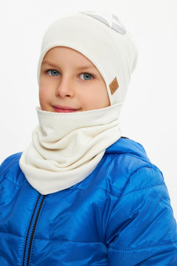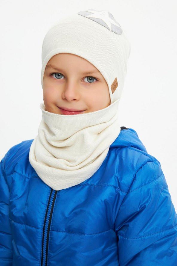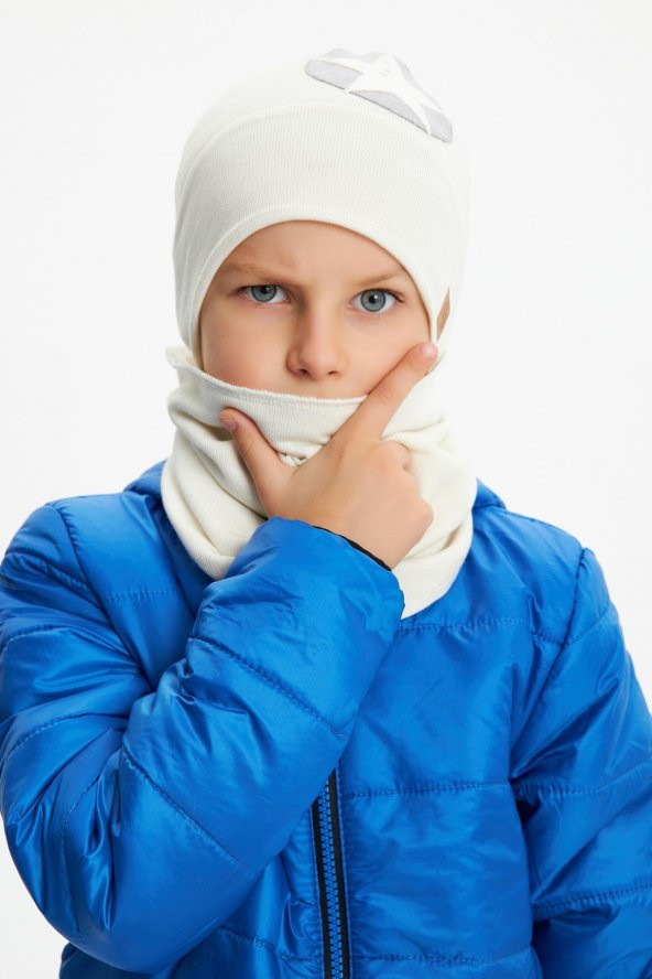 Ana Sayfa Anne & Bebek & Oyuncak Çocuk Giyim Ürünleri ve Kıyafetleri Beyaz Erkek Bebek Çocuk Ponponlu Bere Boyunluk Set yumuşak çift katlı %100 doğal pamuklu