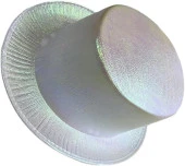 Beyaz Renk Işıltılı Hologram Kumaş Kaplama Fötr Silindir Şapka Yetişkin Boy