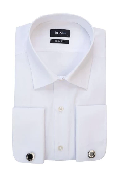 Beyaz Uzun Kol Sert Yaka Slim Fit Dar Kesim Basic Gömlek 1004225059