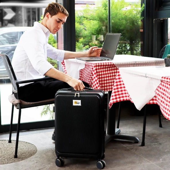 Ana Sayfa Giyim & Aksesuar Bavul & Valiz Valiz Biggdesign Moods Up Ön Bölmeli, Bardaklık ve USB Girişli Kabin Boy Valiz 20" Siyah