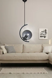 Birsen Aydınlatma Zaman 1'Li Füme Hakiki Glop Camlı Lüks Avize - Yatak Odası - Salon - Mutfak - Hol