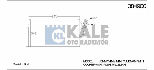 KALE markası Bmw Klima Radyatoru Mini R55 R56 R57 R60 - Kale 384900 (KALE 384900 kodlu) 64536941084 64539239920 KRAFTVOLL 08060092 OEM kodlarına sahip BMW araçları için uyumlu olan bu ürün parcayuvasi.com'da uygun fiyatlarla, hızlı ve güvenli kargo ile hizmetinizdedir.