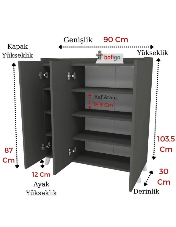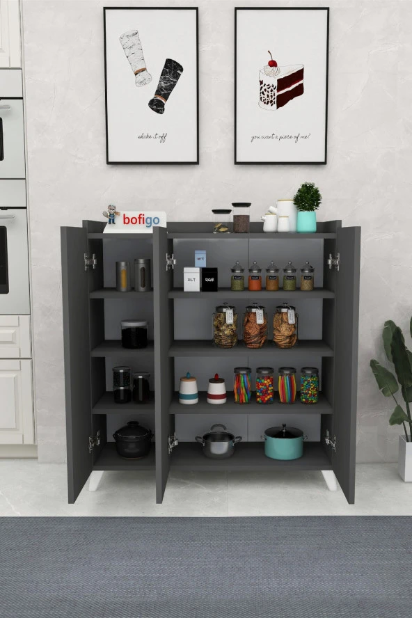 Bofigo 3 Kapaklı Çok Amaçlı Dolap Çok Amaçlı Mutfak Dolabı Banyo Dolabı Ayakkabılık Antrasit