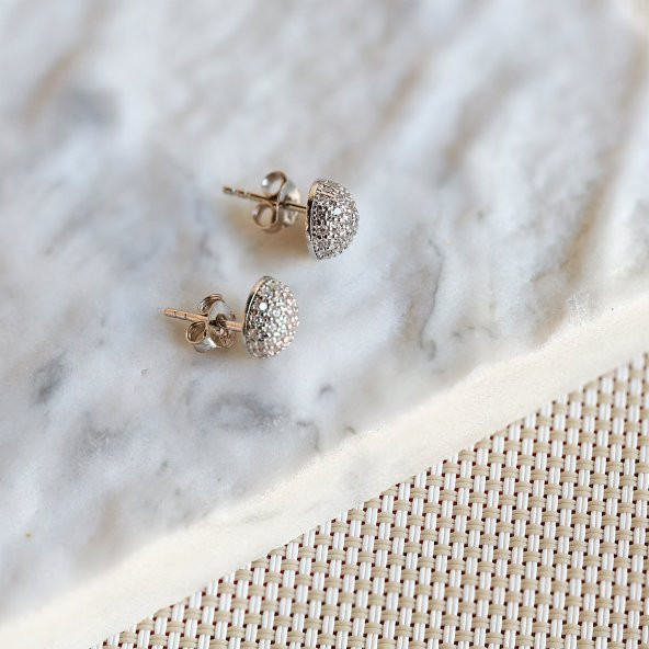 Bombeli Oval Taşlı Gümüş Kadın Küpe
