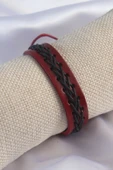 - Bordo Renk Siyah İpli Deri Erkek Bileklik