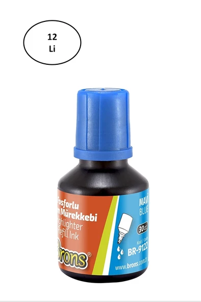 Brons 30 ml Fosforlu Kalem Mürekkebi Mavi 12'li